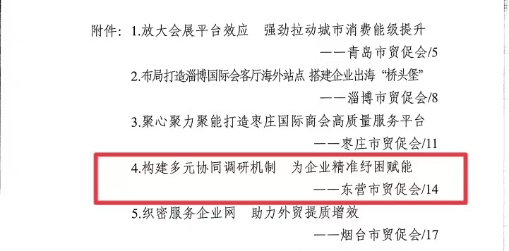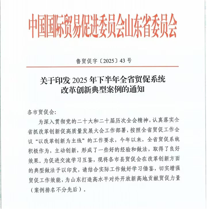 近期,市贸促会组织提报的《构建多元协同调研机制 为企业精准纾困赋能》《创新“抱团出海”模式 助力石油装备产业国际化发展》2项工作经验入选“2025年下半年全省贸促系统改革创新典型案例”,相关经验做法在全省贸促系统推广。